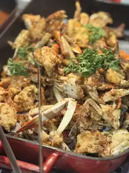 ✅ Must-try recommendations: Sauce crab, sauce shrimp, fried crab (cilantro garnish), ginseng chicken soup, buffet dessert bar