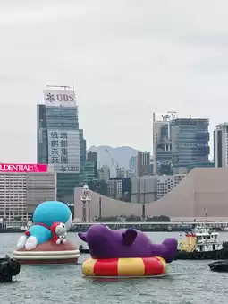 🌊 Then, we witnessed adorable characters like Doraemon, KAWS & Sesame Street's Elmo, Gudetama, and LABUBU parading through Victoria Harbour. It was so cute!