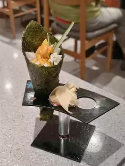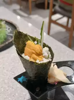Sea Urchin Hand Roll ๐: Wrapped in crispy seaweed ๐, the fresh and sweet sea urchin ๐ is absolutely delicious ๐.