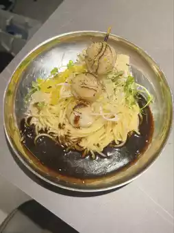 Flame Hokkaido Scallops with Seafood Fried Sauce Pasta + $66 Upgrade Set ๐ There are 3 grilled scallops on the surface ๐ฅ Seafood has mussels ๐ Octopus ๐ Plus fish cake ๐ with slightly salty fried sauce pasta, Creamy and delicious ๐คค