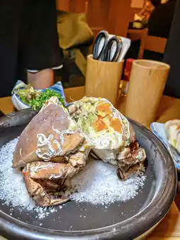 For the main course, each person can choose between grilled Hokkaido crab legs or Japanese sakura wood-smoked snow crab. I personally loved the former, with its thick, juicy crab meat carrying a hint of ocean saltiness. It’s highly recommended! The latter features rich crab roe but has more shells and membranes.