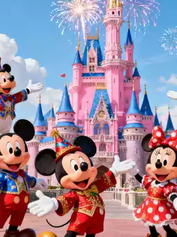 3. Main Street, U.S.A. Parade – Vibrant floats with Mickey, Minnie, and Duffy & Friends, dancers in sparkling costumes, and crowds cheering under colorful balloons.