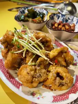 Their homemade four-flavor dumpling platter is perfect for those who want to try everything. It includes two pieces each of cilantro dumplings, luncheon meat dumplings, chive dumplings, and fresh shrimp wontons. The dumplings have thin skins and generous fillings, and each type is packed with flavor. Highly recommended 👍🏻