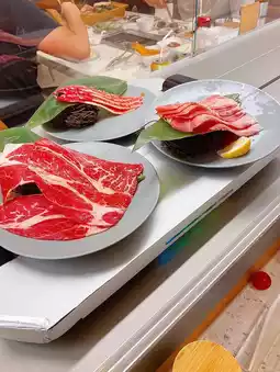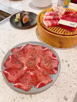 🥢 Rare beef sashimi taste delicious, 🥗 salad bar fresh and hygienic, recommended to try! 🐷Japanese pork, chicken, seafood, big shrimp and scallops, can't be missed🤤