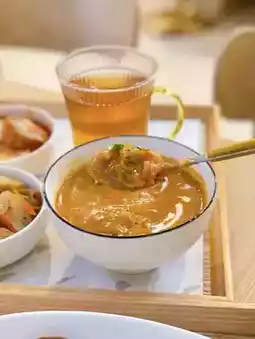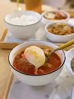 There are a lot of mixed vegetables in the soup, and it's also served with a hot spring egg, which is rich in flavour!