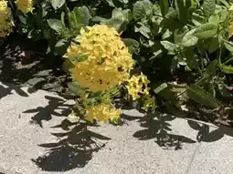 When Wof was taking a picture of the yellow ivy flowers, a small bee caught in the frame.
