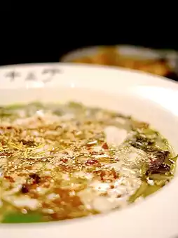 For the main course, I ordered pickled fish🐟, a big plate full of pickled cabbage, sesame, chrysanthemum petals, etc., looking gorgeous✨