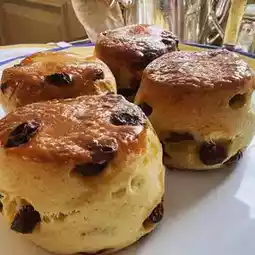 🍞 Muffins English toasted raisin muffins, cream, strawberry jam