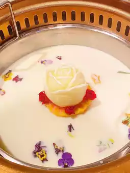 Photoable beautiful milk soup rose ice flower, 🥛 add Hokkaido whole milk and premium roses as a soup, emit a fragrance, 💕 sweet and tempting.