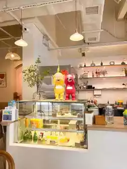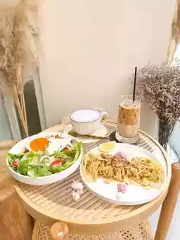 The cafe is mainly simple wood system, the ceiling is relatively high,