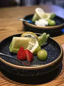 🇯🇵 The seasonal fruits of the day include Shizuoka Prefecture honeydew, strawberry and fragrant grapes, which look fresh and sweet😋 The honeydew is accompanied by a piece of lemon, I didn't expect the two tastes quite match😮