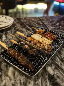 The skewers are grilled very crispy, and the wine is great😌 Among them, the squid sausage, chicken cartilage and lamb rib skewers are the best😋
