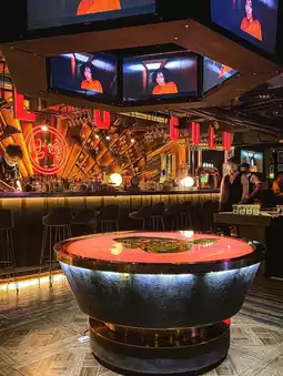 The restaurant has a beautiful environment, perfect for taking pictures and dining at the same time. After dinner, strong beat music will be played. In addition to tapping, there will also be slap cup and beer pong. The atmosphere is lively and suitable for a large group of people to drink and enjoy themselves.
