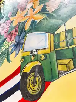 The shop wall is carefully painted with Thai tuk-tuk, very feel🚗