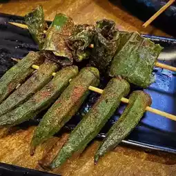 Grilled tiger skin green pepper: Tiger skin green pepper is not spicy at all, and has a unique texture and taste of green pepper.