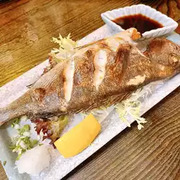 Here is a whole Japanese direct airplane fish price is reasonable must try it 😍 You can choose grilled fish or sashimi Because friends are not used to eating sashimi so we ordered grilled fish We ordered Isamu fish taste rich tender fish tender crust full of salty flavor