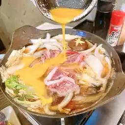 The beef texture of sukiyaki is clear and tender and high-quality. The portion is quite large. There are different styles of vegetable soup and eggs in the sukiyaki. It tastes sweet and adds an udon. It's perfect for two people to eat
