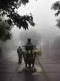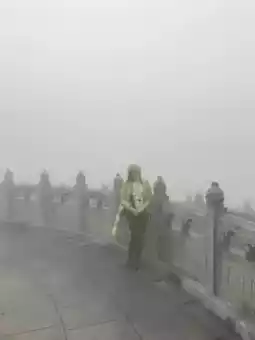 Unfortunately, on the day we went, the weather up there suddenly changed compared to down below. It was very cold up there, and there was fog everywhere. We couldn't see the Big Buddha very clearly, but when we went down, there was no fog. The top was very high up, and the fog was thick like heaven.