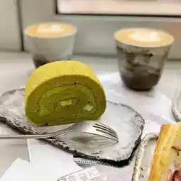 There are several cakes and rolls in the shop, smoky control I chose the brown rice tea white jade roll at the first time 🍵 The roll is fluffy and not dry, with a faint brown rice tea tea aroma, white jade soft and smooth, with coffee good 🍰