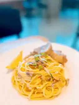 A little accidental did not think the beef tongue straight out 😐 and usually in Japanese things see those very different It turns out to bite a little like chicken kidney but it is softer😂 The pasta is very refreshing and smooth lemon flavor filled the whole pasta and beef tongue is very appetizing