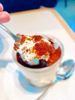 The design of the glass cup is very suitable to hold directly to eat even with a spoon to the bottom of the big bite to eat do not be afraid to spread 😋 milk flavor is very strong cheese is very smooth The lady finger soaked in coffee will not be too bitter