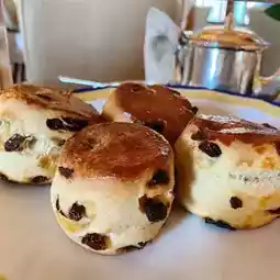 🎀After the three-tiered afternoon tea, start with the bottom layer of English baked raisin muffins, warm muffins with cream cheese and strawberry jam, light, sweet and delicious😋