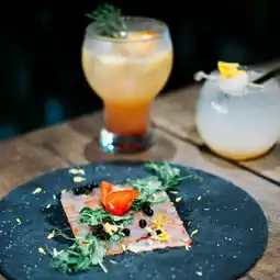 This is an Italian-style appetizer with thinly sliced red shrimp and vegetables of different colors for garnish. It tasted good, just really thin and a bit not enough