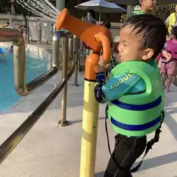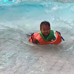 After a long round of playing, we went to the 4️⃣st stop, "#Tianhai Bay", where there will be #artificial waves every once in a while. Since there is no float, the blisters are too big, so my mother simply gets a life jacket🦺 for the pig to wrap up the float😆