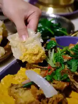 Super large portion of yellow curry soft shell crab! Suitable for 3-4 people ~ yellow curry mixed with eggs is delicious, this yellow curry is not spicy at all!