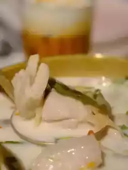 Wow with a little appetizing spicy coconut chicken soup 🥥 Coconut flavor is super rich The soup is very clear without any oil ~ There are chicken and a lot of mushrooms 🍄 Chicken pieces boneless meat is super tender 🍗 The pot is hot in the open oven to drink very warm ~