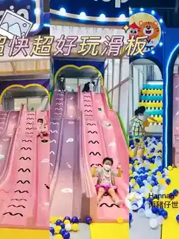 First come to play a Mojo Zone super giant climbing area, the venue set up 8 long slides to test everyone's courage, rain pig certainly not afraid, the first time has rushed up, see him sliding down the sense of speed, rain pig mother have to play in addition to this fun slide, but also meteor hammer, climbing wall, rope bridge, bouncy bed and so on.