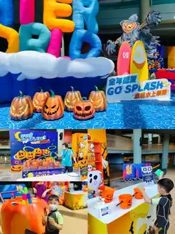 Sheung Shui Park held "Hello All" in October. There was a Halloween booth activity in the Coral Lobby. Children could play games to get candies. "Surge Bay" and "Sky Bay" were transformed into inflatable pumpkin wave pools, which were first-class check-ins. Unfortunately, the pumpkin "rafting exploration" promised on that day was not open🥲