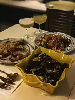 The restaurant is divided into two floors, each floor has its own photo spot. The lighting upstairs is soft, and there is a sofa cushion, so you can relax and talk. The restaurant also has cocktails and coffee available. It's good to chill after a meal😌