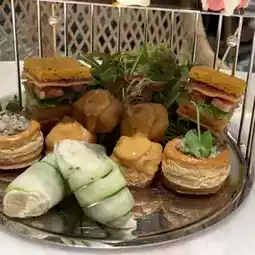 The bottom savory dishes are Thai classics, with tom yum shrimp egg rolls, crispy chicken sticks with spicy mayonnaise, Parma ham sandwich, and my friend and I's favorite green curry chicken loose box😍