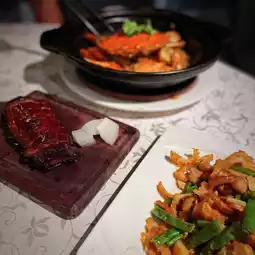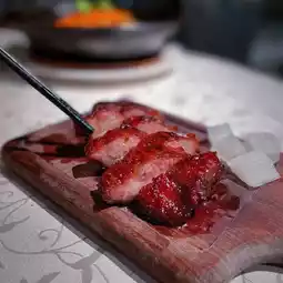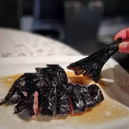 This roast goose is the first time I saw, it is a black roast goose, and the crispy and delicious goose skin still has a burst of oil, it can be seen that the roast goose is plump enough, and its black color is made of black truffle, so in addition to the oil aroma of the roast goose itself, it also has a unique aroma of black truffle, and the taste is surprisingly good with the roast goose.