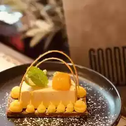 The appearance is super beautiful again, the syrup texture is between ice cream and Sorbet, rich lime flavor, sweet and sour, the bottom is crispy caramel cookies, with lemon mango sauce to eat together, not too sweet and tasty, very perfect ending