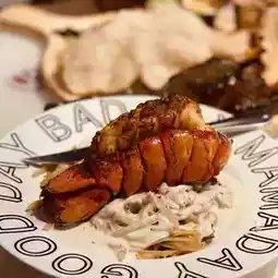Large lobster meat, surrounded by cheese sauce, tasted superb, crispy meat, pasta soft and hard moderate, very hanging juice, cheese cream sauce lined with a lot of small lobster meat, mushrooms, rich flavor, with pasta is really too good