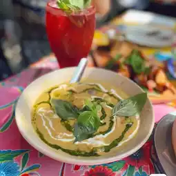 The green curry has roast chicken in it. Order pizza to order separately. It's so delicious. I want to eat another bowl🥣