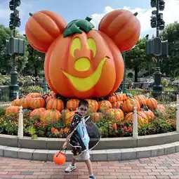 🎃Disney's Halloween activities have started. Aidan takes pictures with the big pumpkin every year, one a year🥰