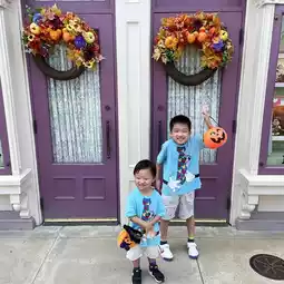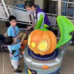 🍭The most popular thing among children must be the candy distribution activity in the park. The two brothers carried candy around and harvested so richly. Both baskets were filled with all of them. They were so happy! Also this year there are many more candy holders, each cartoon pumpkin shape is very cute!