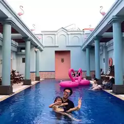 The swimming pool is located on the 21st floor of the rooftop. Piggy is looking at the view outside the elevator all the way up, looking extremely excited😆. The swimming pool design is a bit Moroccan style, the most eye-catching 👀 is the big red crane 🦩 blisters, the day is mainly couples 💑, so everyone is so with the red crane 🦩 check-in 📸🤣🤣🤣