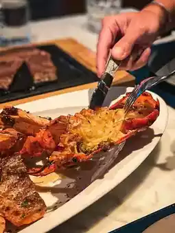 The platter features Boston lobster, Hokkaido scallops, Spanish octopus, New Zealand salmon and prawns. Overall, the seafood platter portion is really quite a lot, the ingredients are fresh and tasty, and the cooking time is also handled quite well, no overcooking situation appears, more can eat all kinds of different seafood at once 🥰