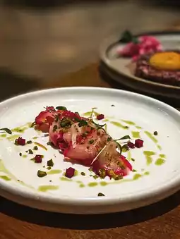 The oily fish is plump and smoky, and is simply served with pickled beetroot, lemon balsamic vinegar and crushed pistachio. It is a fresh and appetizing starter😌