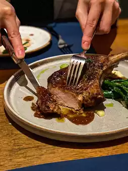 The pork chop is grilled beautifully, and quite thick, the meat is firm and chewy, with mustard seed barbecue sauce more tasty, another worth mentioning is the mashed potatoes quite tasty 😋