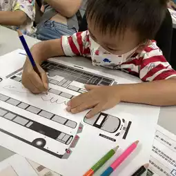 During the workshop activities, the staff also arranged to go outside in groups to take pictures📸️. The picture spot was converted from a retired bus, so the children can have a taste of the feeling of being a little driver, very crowded😊