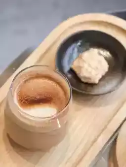 Hot drink with a small piece of egg white cake 🍫 smooth and comfortable to enter, orange wine chocolate and coffee mixed together very smooth! This cup can be encoreed again!