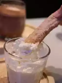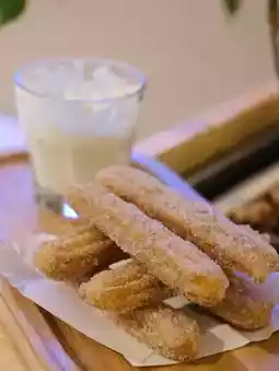 The chenna sticks are arranged in a tic-tac-toe shape. The chenna sticks are crispy on the outside and soft on the inside! The outer layer is bursting with sugar 🤣 Dip a dip in Greek yogurt sauce to eat together can relieve thirst ~ This must bring a friend who is not afraid of fat to share 😆