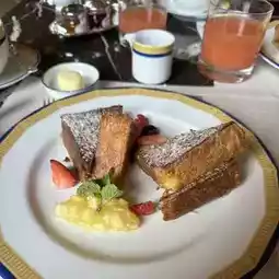 We chose grapefruit juice, Italian cappuccino, scrambled eggs with bacon, chicken and beef sausage and French toast with apples, mixed berries and maple syrup, 1 serving each. Bread and cereal will be served first. Remember, remember, remember, don't eat the bread in one go, because when we finish eating bread and cereal, we are already 80% full. When the scrambled eggs with bacon, chicken and beef sausage and French toast with apples, mixed berries and maple syrup are served, we have no appetite. Fortunately, the scrambled eggs with bacon, chicken and beef sausage I ordered are not too much, and I can eat them. If you order French toast, remember to save some space! The overall taste of the classic Peninsula breakfast is good and very exquisite, of course, the main thing is the "eating environment"!