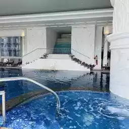 Here you can enjoy the beautiful view of Victoria Harbour, and there are two massage pools. The water in the pool is 150 meters deep. As I am short and can't swim, I spend most of my time relaxing in the massage pool!