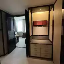 When you enter the room, there is a luggage storage in front, and below is a row of cabinets with hair dryers, nail dryers, mask covers, and disinfectant wipes; next to it is a row of vertical cabinets which are wardrobes, with two sets of pajamas, slippers, umbrellas, flashlights, and more!